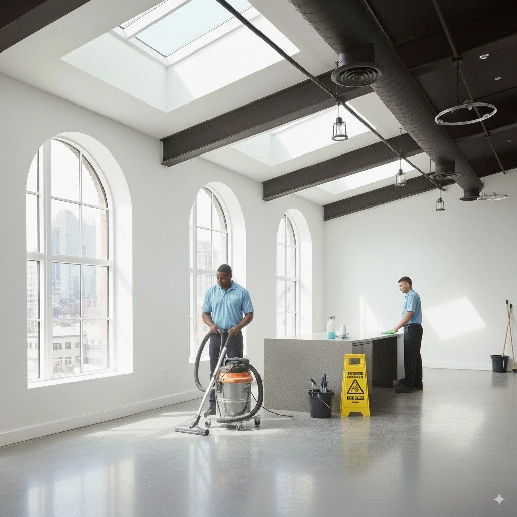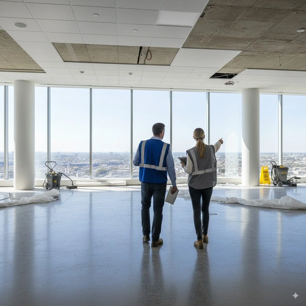 Next, we deep clean every surface for a polished, professional result. This includes floor care, restroom sanitization, fixture polishing, window cleaning, baseboards, vents, and high-touch surfaces. We also remove paint splatter, adhesives, and protective films, leaving your space spotless and safe.